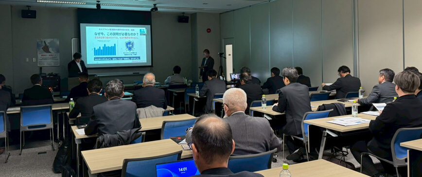 約80名が参加した今回の部会では、昨年7月から施行された「広告宣伝ガイドライン(第3版)」の運用から半年が経過したことを受け、この半年間で情報提供システムへ届いたガイドライン違反が疑われる広告宣伝内容の傾向や、第3版から追加された新たな類型に係る是正勧告事例の紹介などを勉強した。